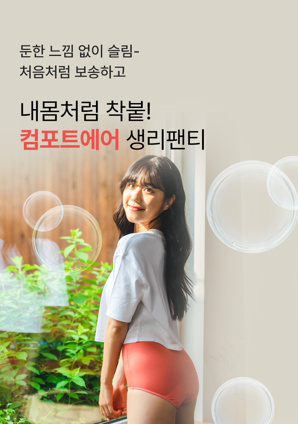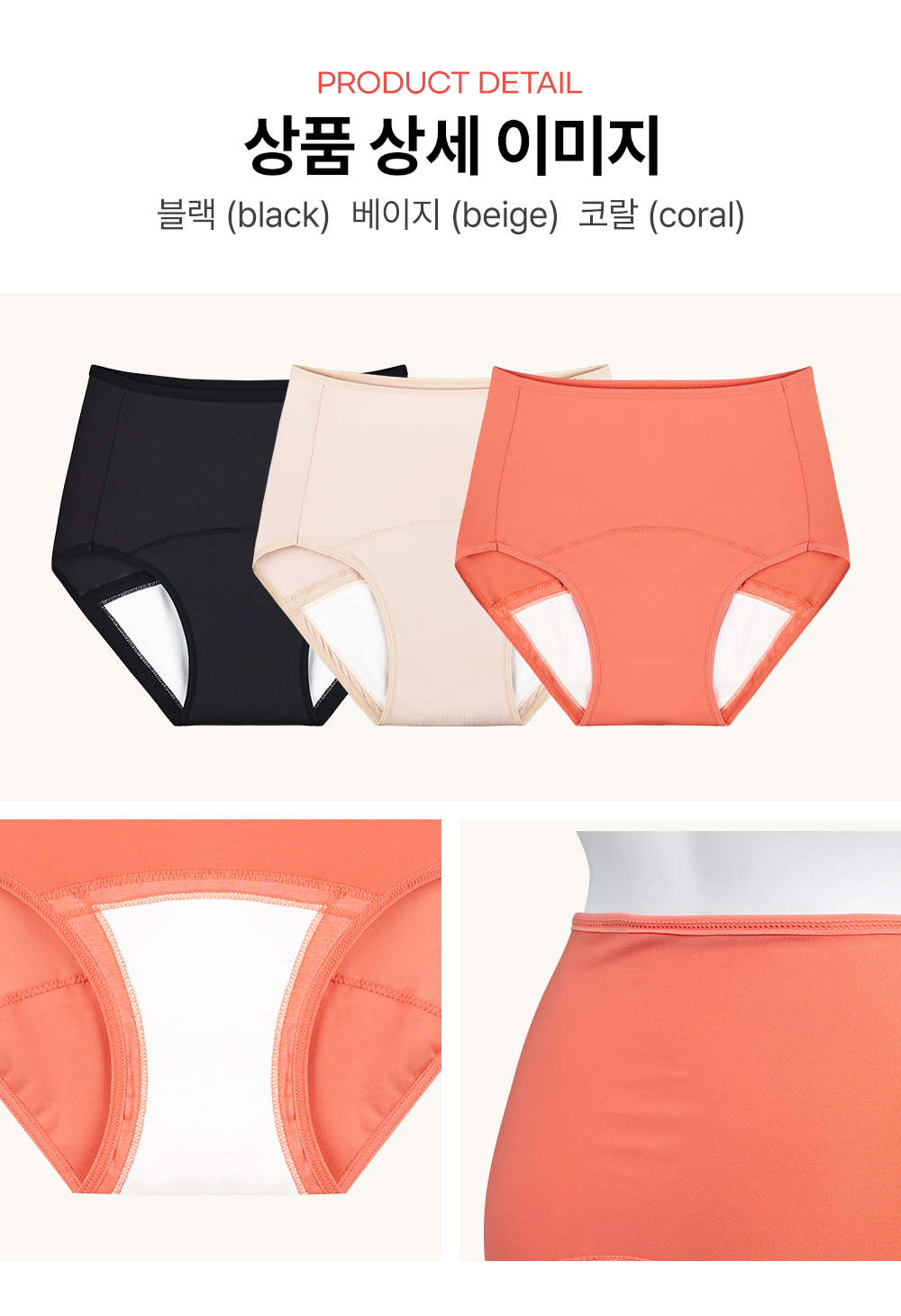 단색 컴포트에어 하이웨스트 생리팬티 3장 SET + (증정) 효소세제 300ml + 방수 파우치