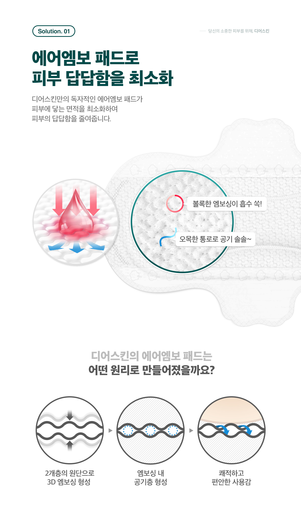 [깨끗한나라] 디어스킨 에어엠보 대형 14매 x 5팩 + 오버나이트 12매