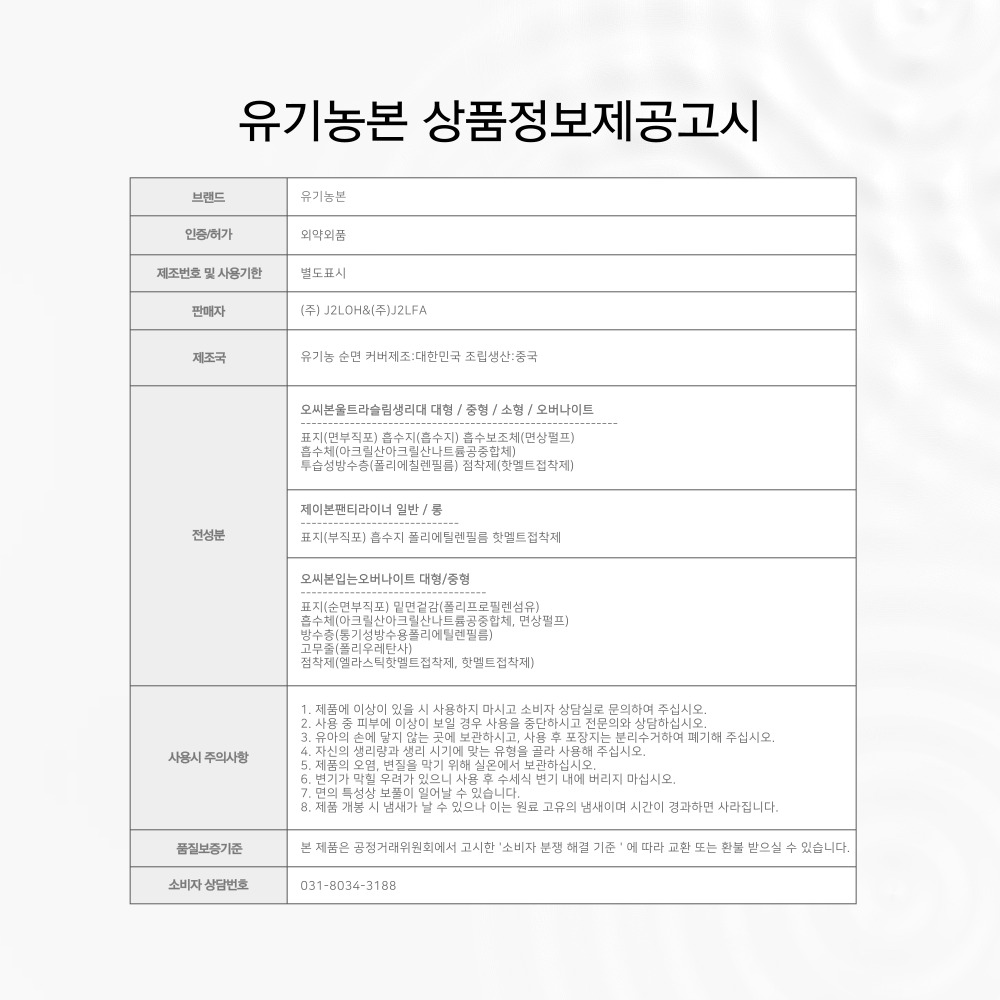 유기농본 순면커버 울트라슬림 날개형 오버나이트 10매 * 5팩