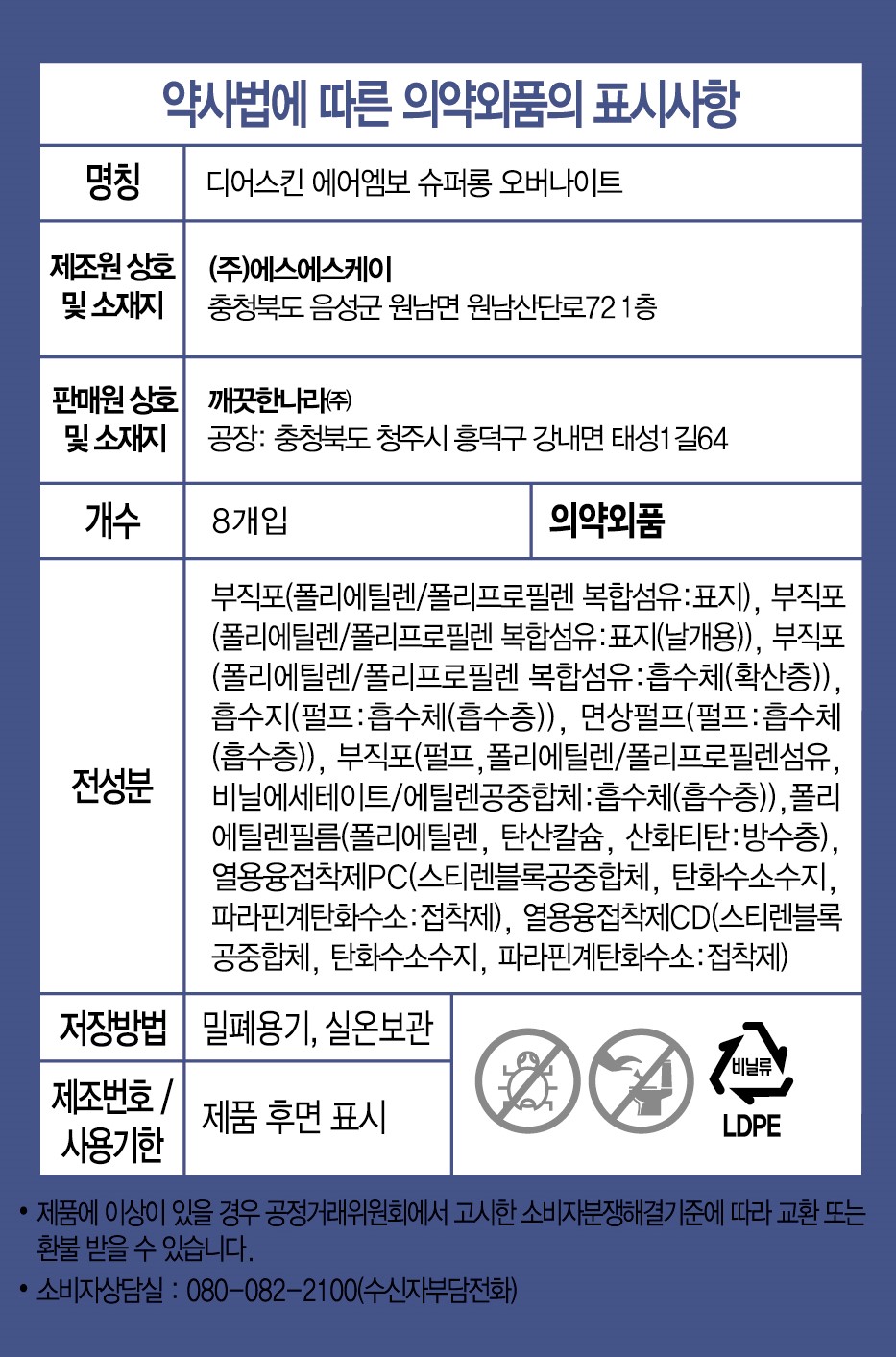 [깨끗한나라] 디어스킨 슈퍼롱 오버나이트 8매 x 4팩