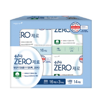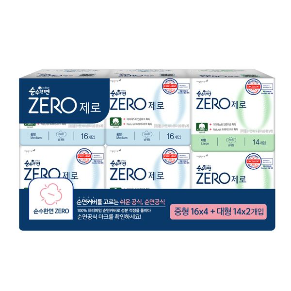[깨끗한나라] 순수한면 제로 중형 16매 x 4팩 + 대형 14매 x 2팩